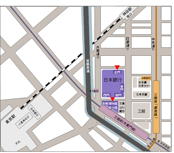 所在地 本店案内図 ・入館案内 : 日本銀行 Bank of Japan。