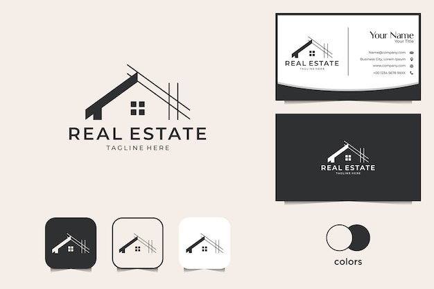 住宅リフォーム不動産のロゴデザインと名刺Premiumベクトル素材。