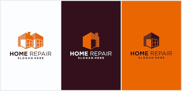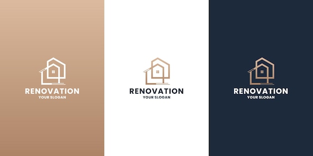 リノベーションのロゴデザイン。不動産リフォーム、不動産、建築家のロゴ。Premiumベクトル素材。
