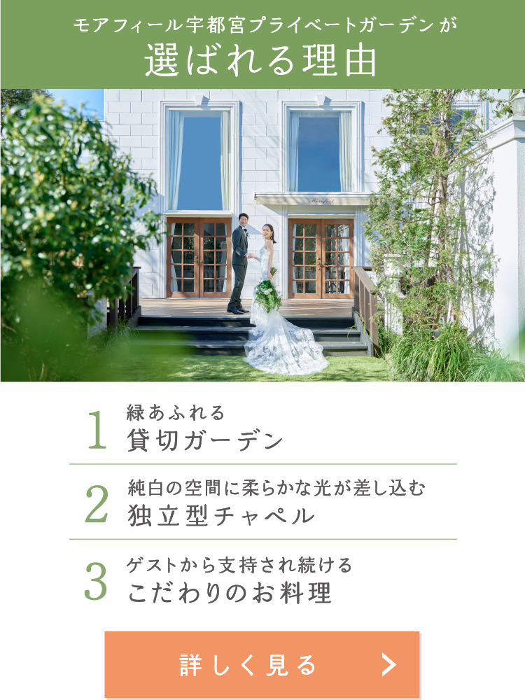 モアフィール宇都宮プライベートガーデン栃木県宇都宮市の結婚式場・ゲストハウス 公式。