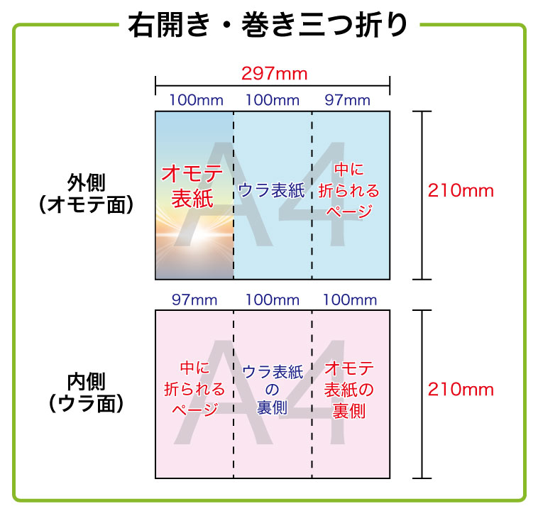 三つ折りリーフレット A4仕上 の入稿データ作成ガイド 少部数印刷・小ロット印刷専門 オンデマンドP。