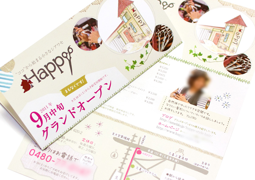 3つ折りパンフレット 100×210mm サロン専門印刷通販サイト サロンプリント。