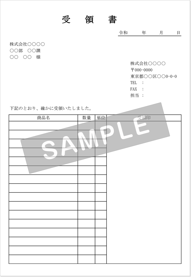 書類受領書 受領証・受取書 の書き方 書式・様式・フォーマット 雛形 ひな形テンプレート ワード Wordビジネス文書形式 03 件名が上-文書 テンプレートの無料ダウンロード。