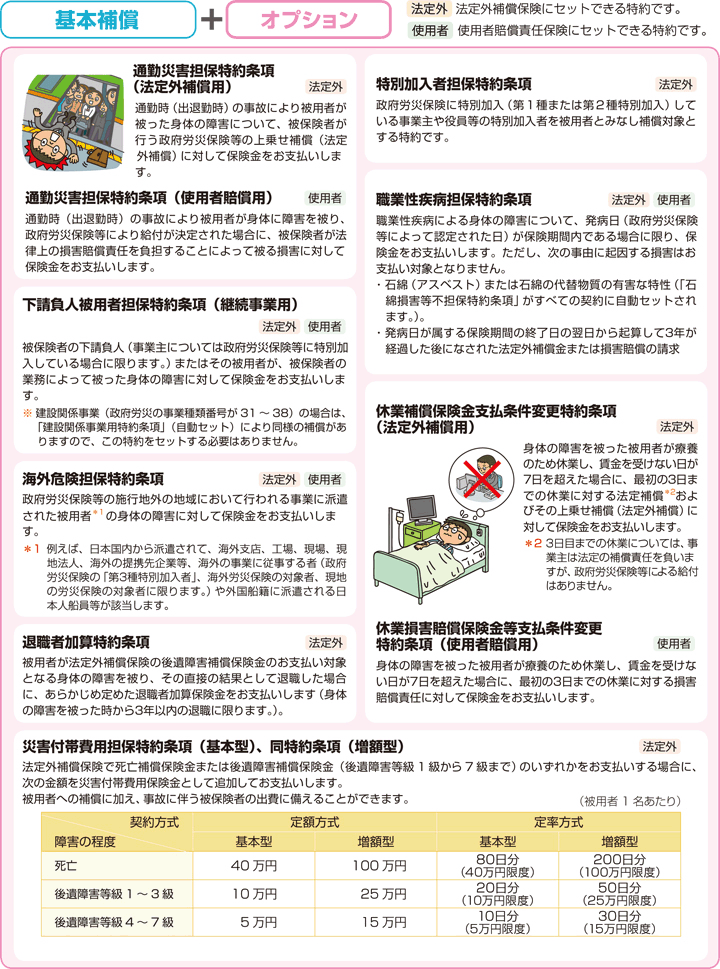 使用者賠償責任補償等「労災あんしん保険」の補償内容。