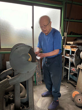 2025 05 17 “高村刃物製作所”は越前打刃物会館近くの小さな町工場風のたたずまい。 私が手にしてるのは映画 #グランメゾン・パリで木村拓哉さんが実際に撮影で使った“高村作”の包丁 高村光一、日出夫、勇人3兄弟を中心に精魂込めて鍛造し、研ぎの素晴らしさで世界の。