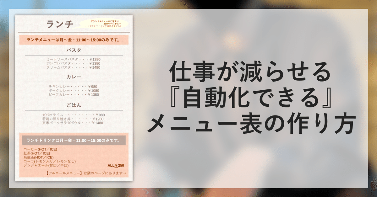仕事が減らせるメニュー表の作り方山吹誠@ぐうたらぐらし!フォロバ100。