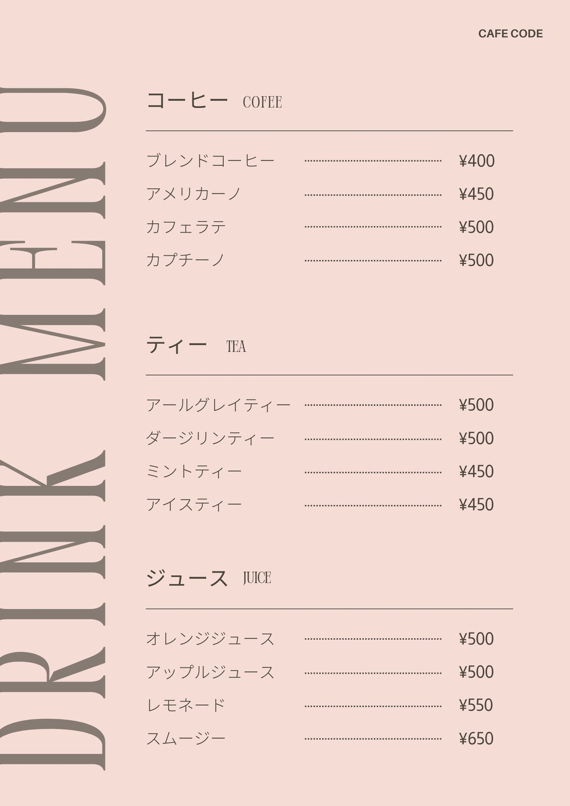 無料ドリンクメニューテンプレートでおしゃれにデザインCanva。