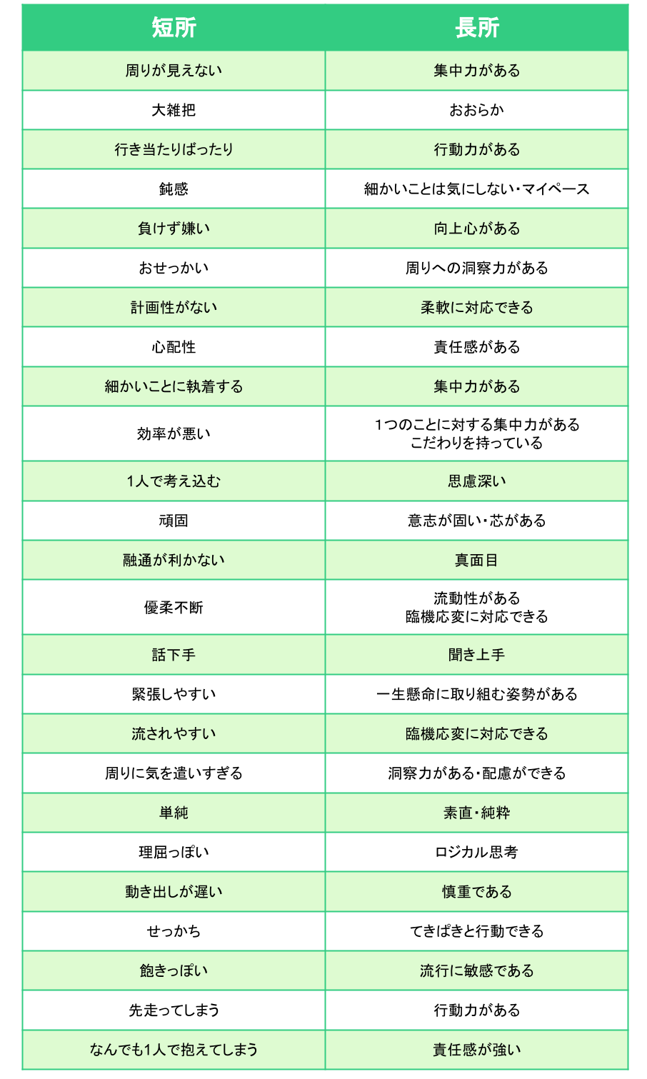 長所と短所 面接 ESの例文と言い換え一覧<100選>書き方も解説就活サイト ワンキャリア。