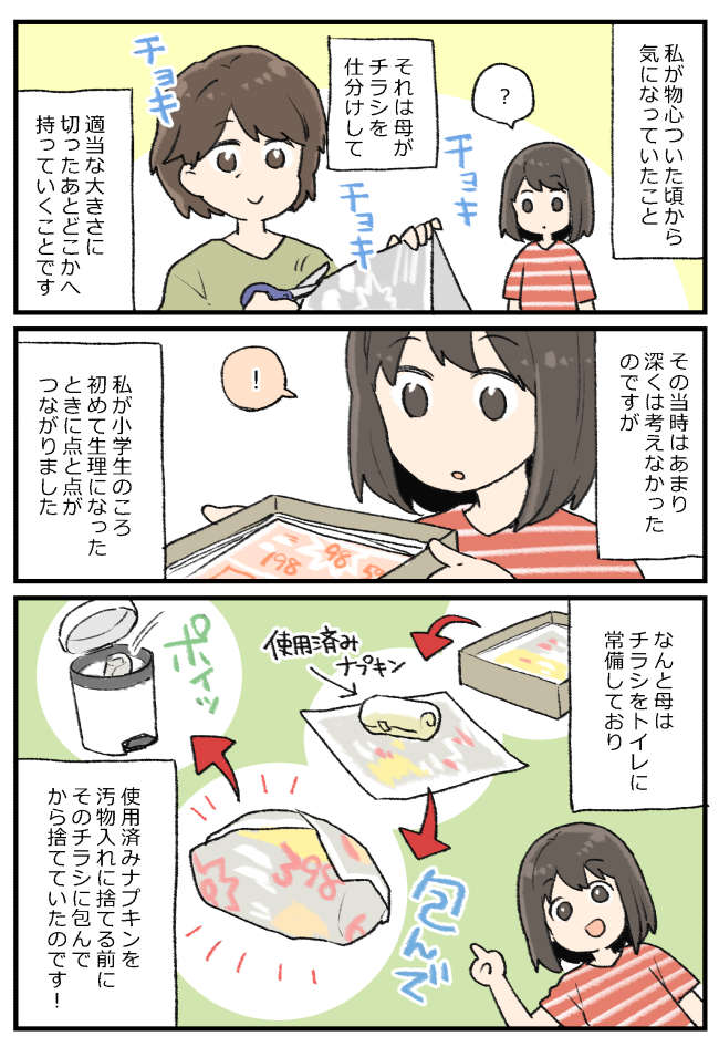 使用済みナプキンのマナー>友だちの家へ行く前日に生理。母「準備しなきゃね」何の? 前編まんがママスタセレクト。