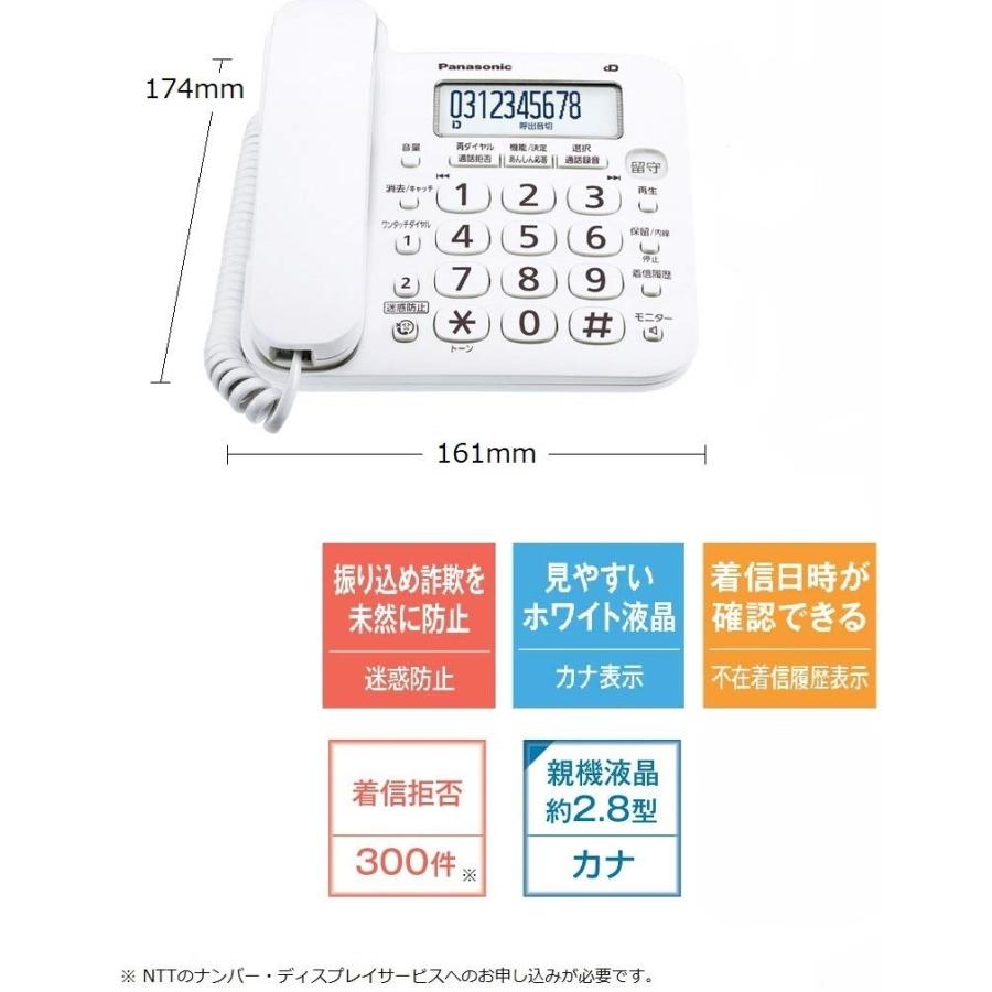 Panasonic パナソニック 固定電話 留守番 電話機 親機のみ、子機なし 特殊詐欺対策、迷惑電話対策機能搭載VE-GDGZ2シリーズデジタル留守録機能搭載。