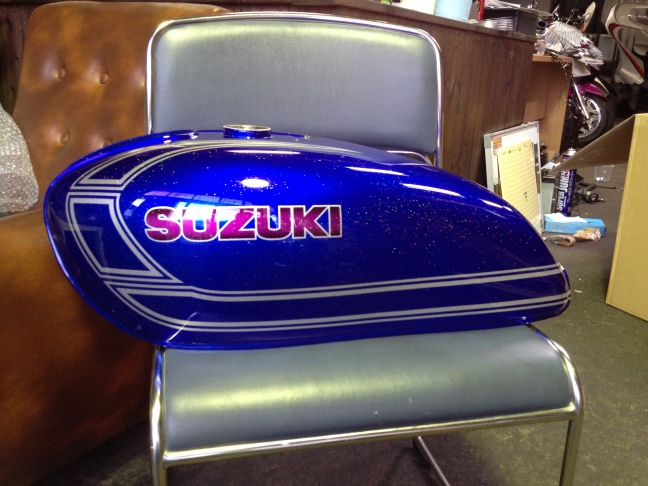 息子のgsx250eザリ カスタムペイントから戻って来た ^^千葉県野田市のdoubleさんの高橋さん 本当に有り難うございました😃だいたいのイメージを伝え 後はお任せスペシャル‼️ ラメやグラインダータトゥーなど 技のてんこ盛り‼️ 想像を超えて え⁉️マジ‼️ 走らせるの。
