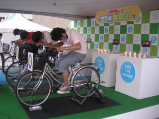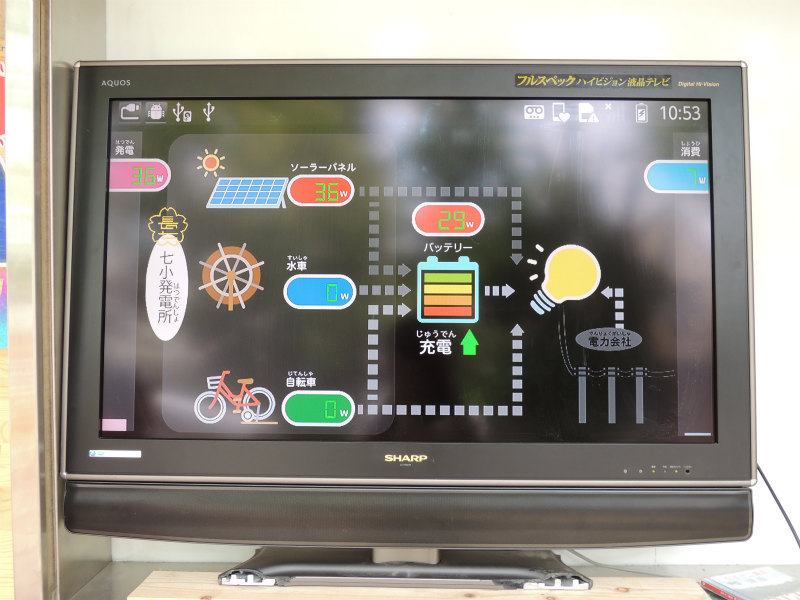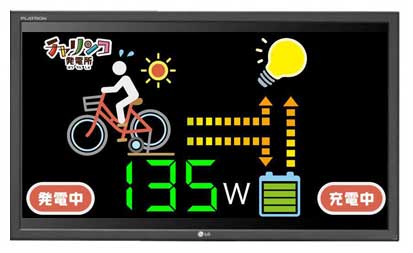 チャリ発発電量表示システムの紹介 – 有限会社ひのでやエコライフ研究所。