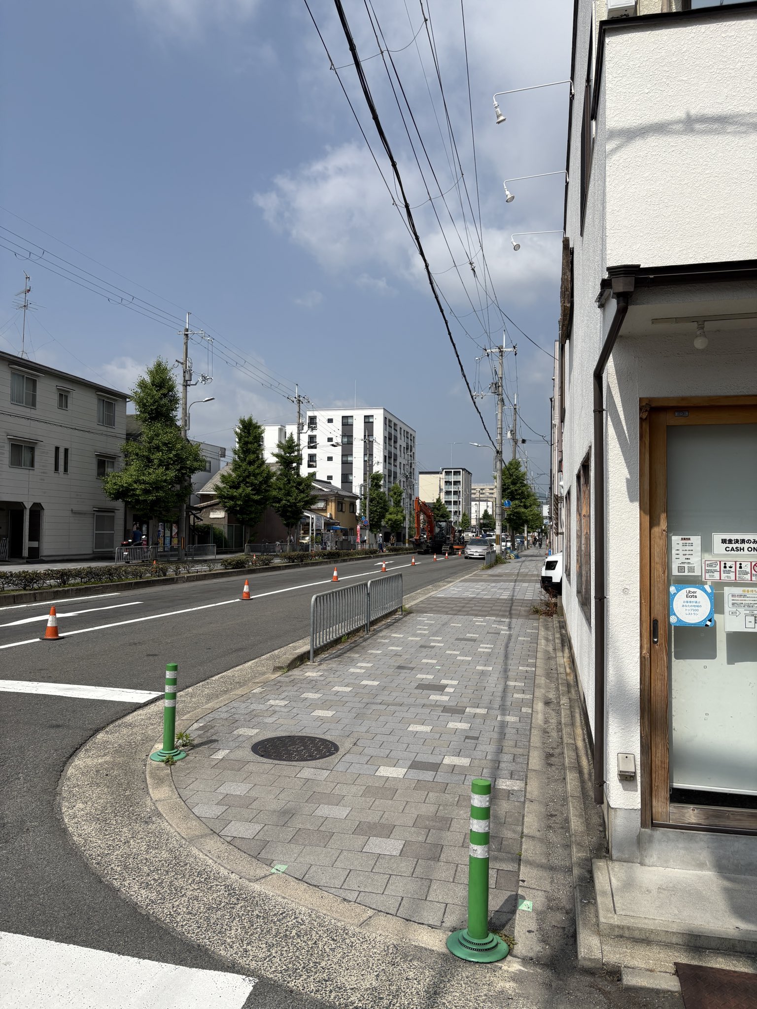 太秦天神川駅前で車と125ccバイクの事故です。御池通りの天神川通~三条通間、中央分離帯付近の車線規制して、警察の事故見分中です。 現場付近は警察官が 交通誘導してます。 2025年1月6日15時情報です。