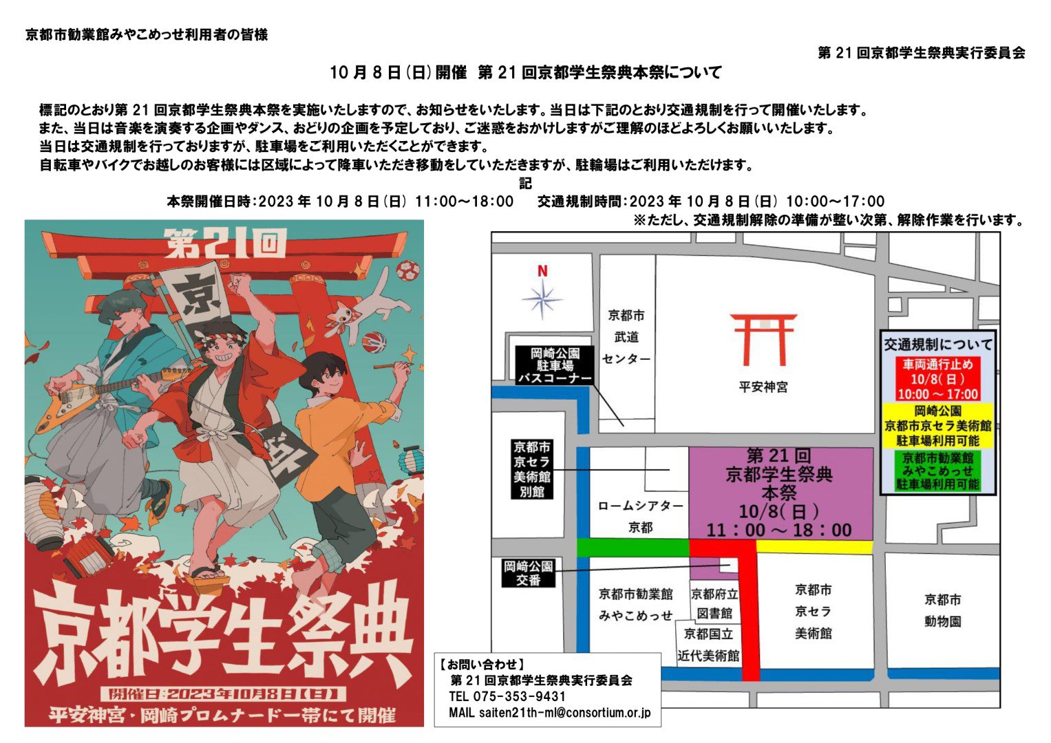 周辺交通規制について10 8 日 、10 22 日 、10 28 土来場者様へのお知らせ京都市勧業館「みやこめっせ」京都最大級のイベント会場・展示場。