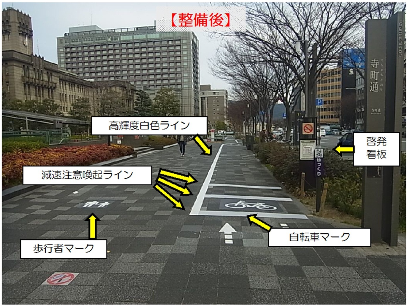 京都市:御池通 御池大橋~堀川通 の自転車通行環境整備事業。