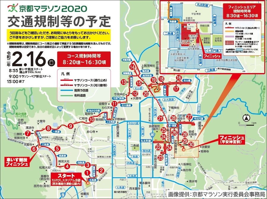 K-tis 規制区間マップ交通影響京都マラソン2024。
