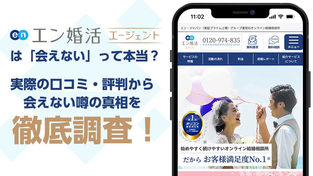 エン婚活エージェントの口コミ・評判・料金を詳しく解説!体験談を元に本当に出会えるかどうかも徹底調査! - 結婚相談所比較はメオティ。