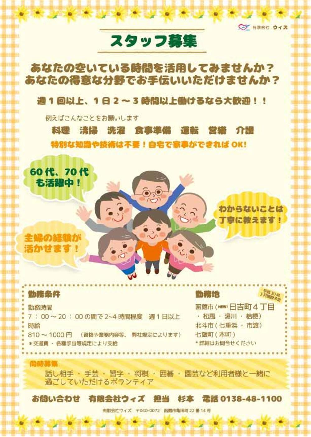 A4サイズ片面 シニアによる家事お手伝いサービスのチラシの副業・在宅・フリーランスの仕事チラシ作成・フライヤー・ビラデザインの求人 ・案件なら ランサーズ。