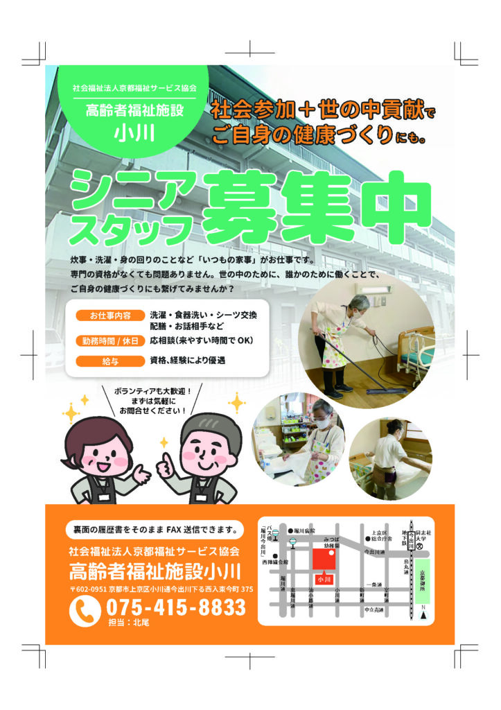 従業員募集 ポスティング用求人チラシ作成しました。サービス付き高齢者向け住宅、シニア 賃貸住宅、介護事業運営の株式会社バイ・スティックケアサービス公式ブログ。