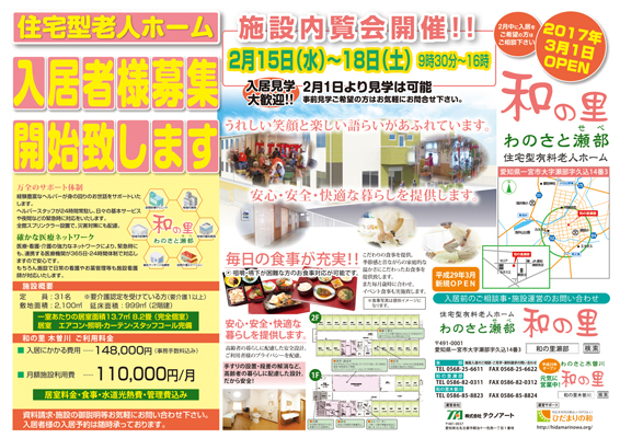 住宅型老人ホームの内覧会とスタッフ募集に関するチラシアリキヌ:チラシ制作部。
