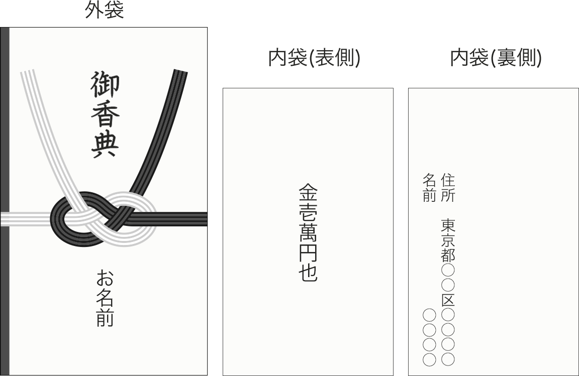 香典袋の書き方は? 表書きや中袋への金額・住所の書き方について - 香典返し・法事・法要のマナーガイド。