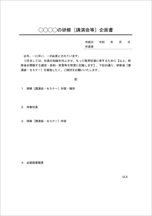 すぐに使える企画書テンプレート Word・Excel・PDF・G Docs 無料・登録不要ビズ研。