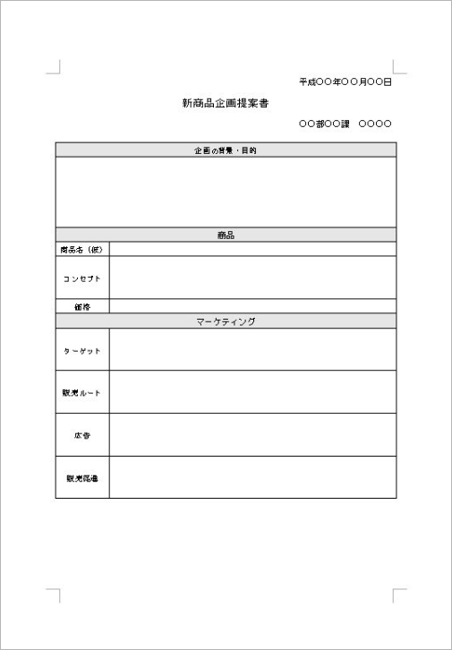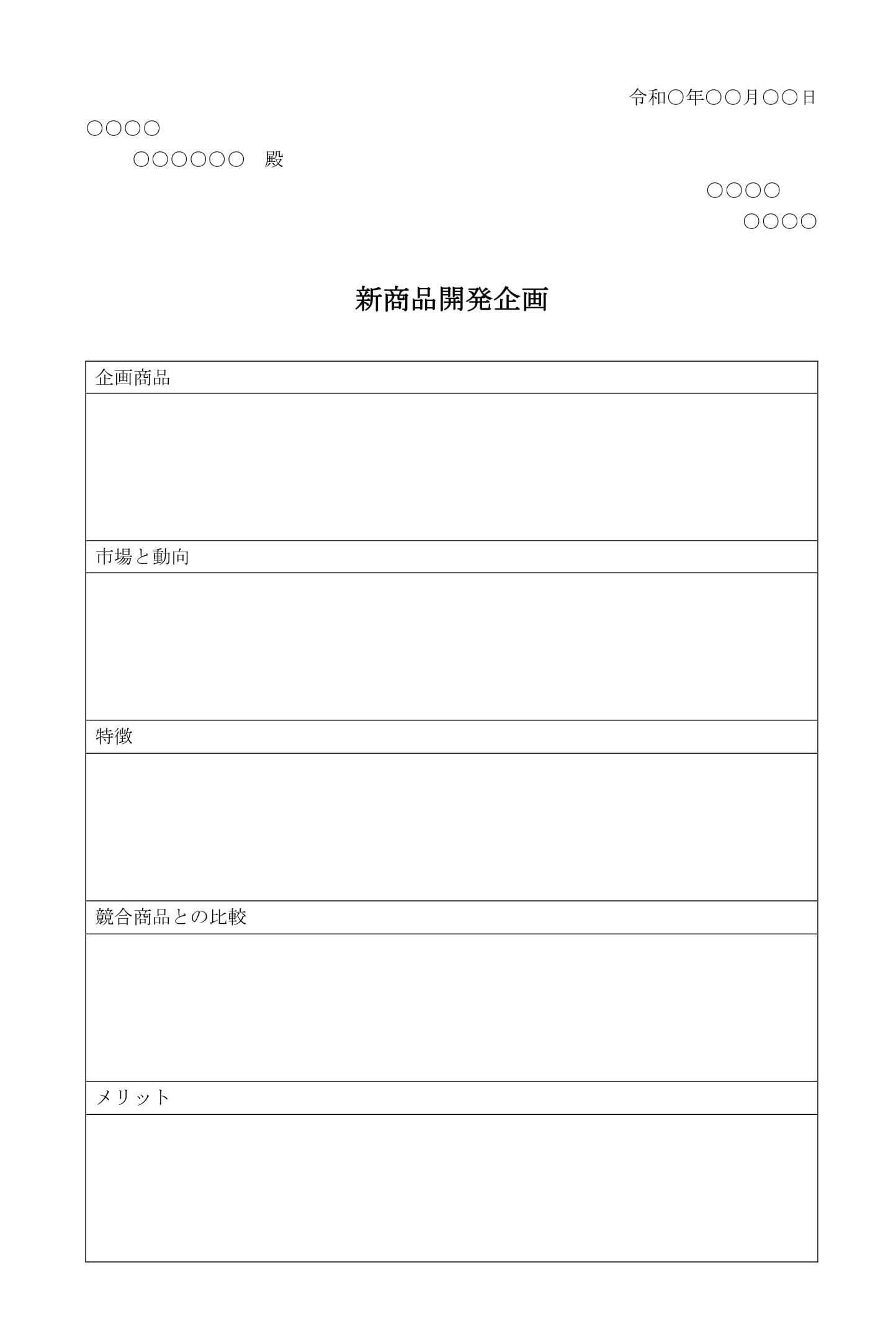 新商品開発企画の書式テンプレート Word・ワードテンプレート・フリーBiz。