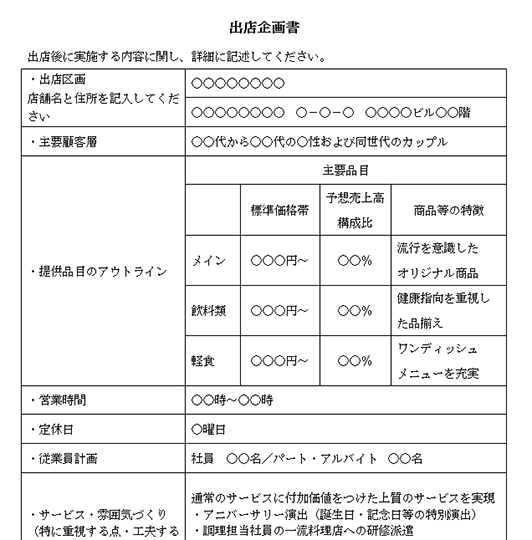 企画書 イベント ・表形式版・Word 見本付き bizocean ビズオーシャン。
