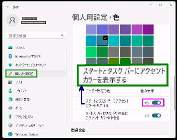 Windows 11 - タイトルバーと枠線にアクセントカラーを設定する方法 - PC設定のカルマ。