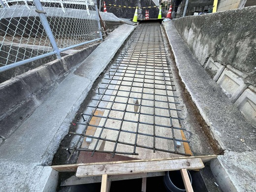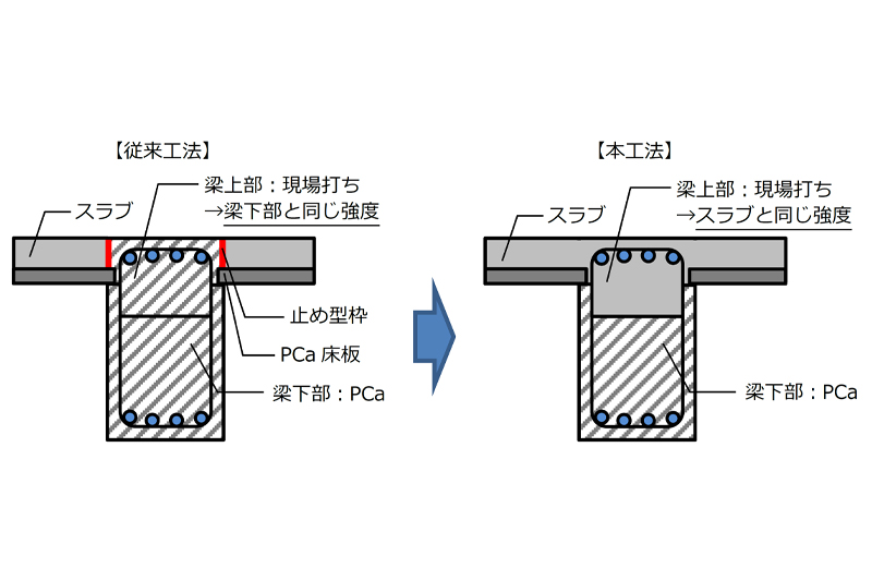 施工の神様梁上部とスラブを同強度で同時打設。止め型枠の設置や解体が不要に。