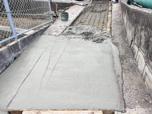 005 基礎工事-スラブ 土間 コンクリート打設基礎 3人-コンクリート打設。