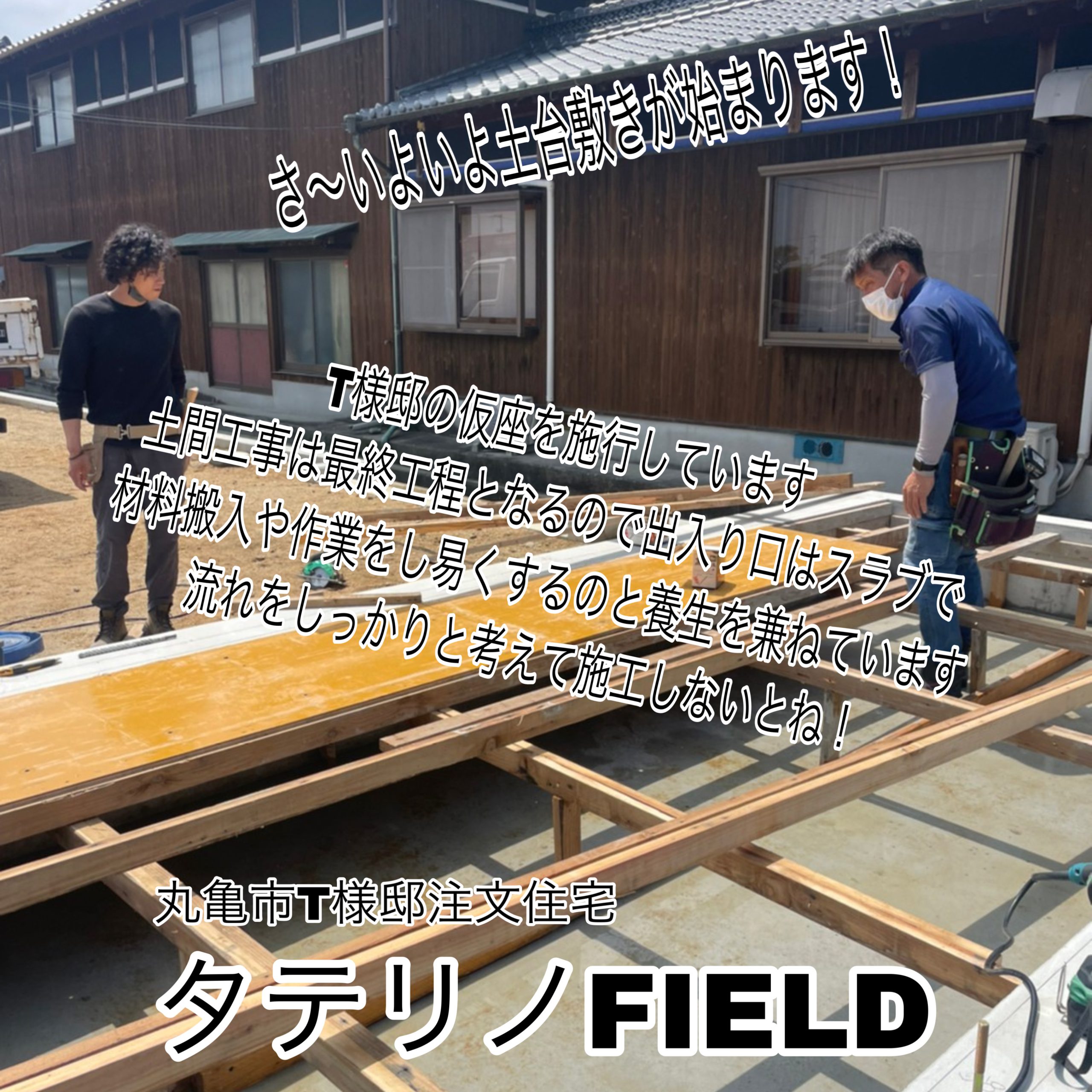 丸亀市T様邸注文住宅の基礎工事が完了して 全面土間の仮スラブを施工しております!愛媛県西条市で注文住宅を建てるならタテリノFIELD。