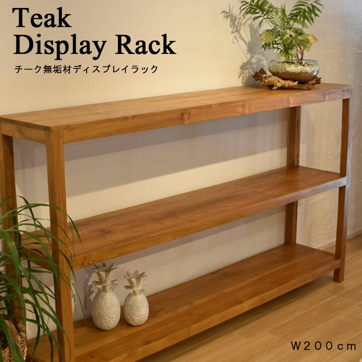 ディスプレイラック 陳列棚 陳列台 商品陳列 シェルフ ラック 木製 おしゃれ 棚 奥行40 北欧 完成品 かわいい 木 木天板 天然木 無垢 チークナチュラル 収納 チーク材 家具 インテリア 木製家具 収納棚 収納家具 木の家具 送料無料 アジアン家具 バリ雑貨 KANMURYOU。