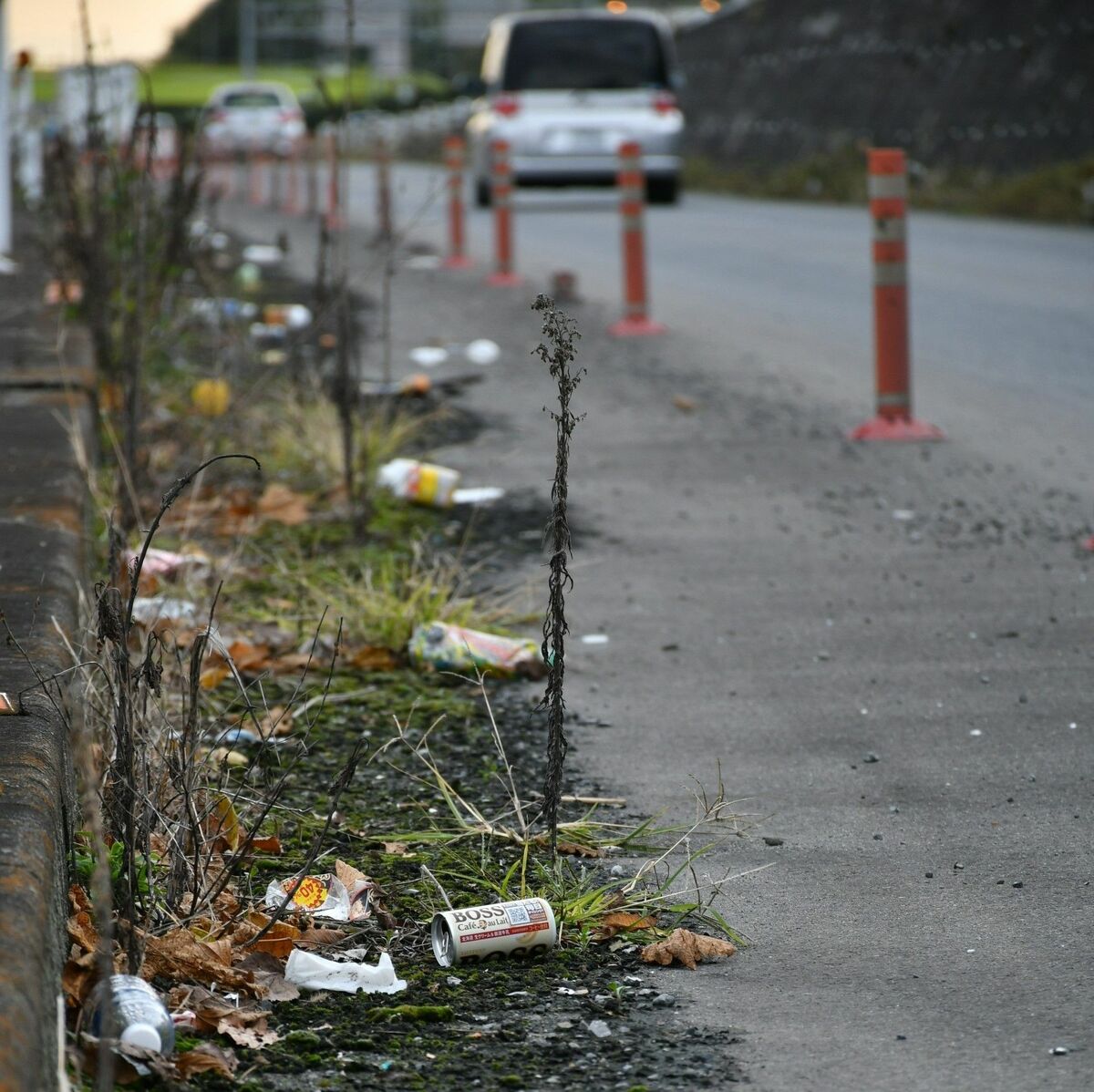 道路脇にポイ捨てされたゴミの写真素材98623576- PIXTA。