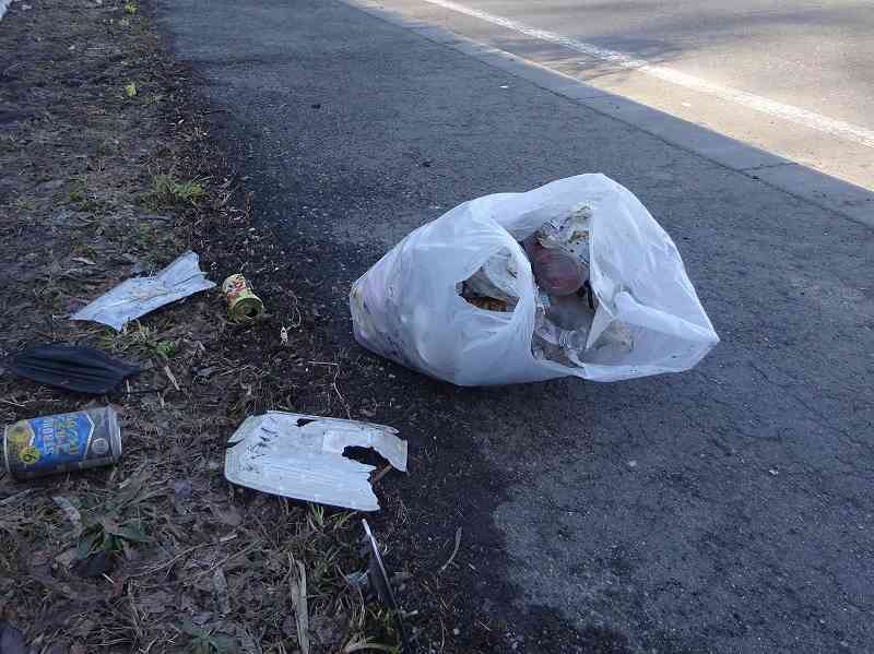 交通イメージ写真<03> 道路脇に車からポイ捨てされたゴミ の写真素材76817334- PIXTA。