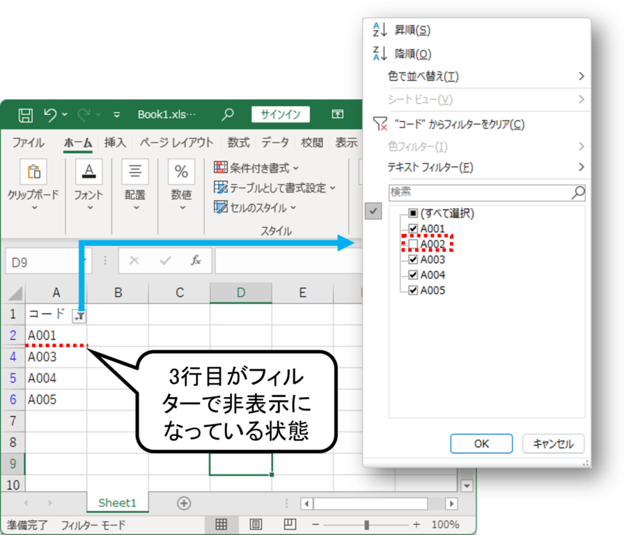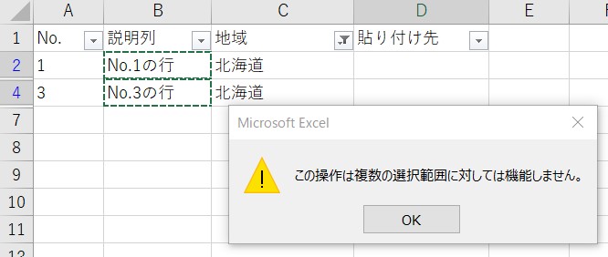Excelでフィルターコピーが正しく動作しない場合の解決法ノースディテール。
