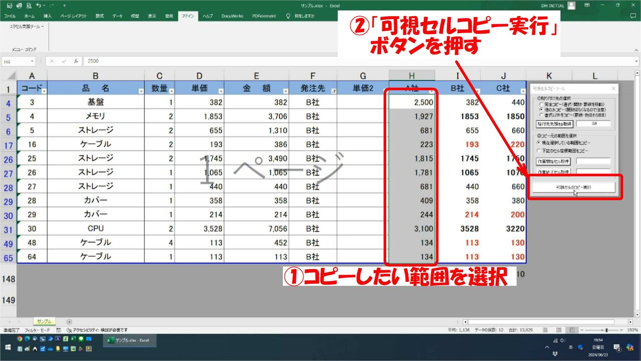 Excel で表示されているセルだけ選択してコピーする方法法人向けパソコン PC ・計測器レンタルなら横河レンタ・リース。