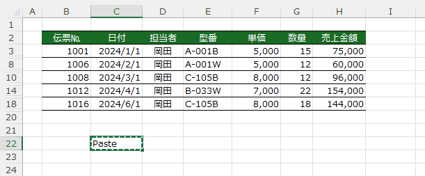 Excel見えているセルだけコピーする技~可視セルのみをコピーする。