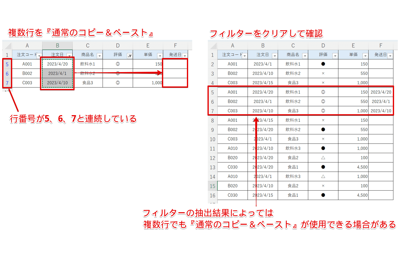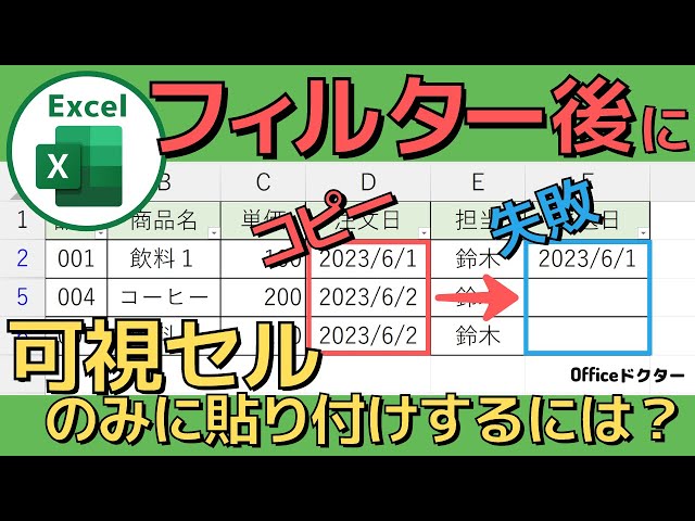 Excel エクセル のフィルターで、可視セルのみ貼り付ける方法貼り付けるとずれる場合や、複数行への対処法。