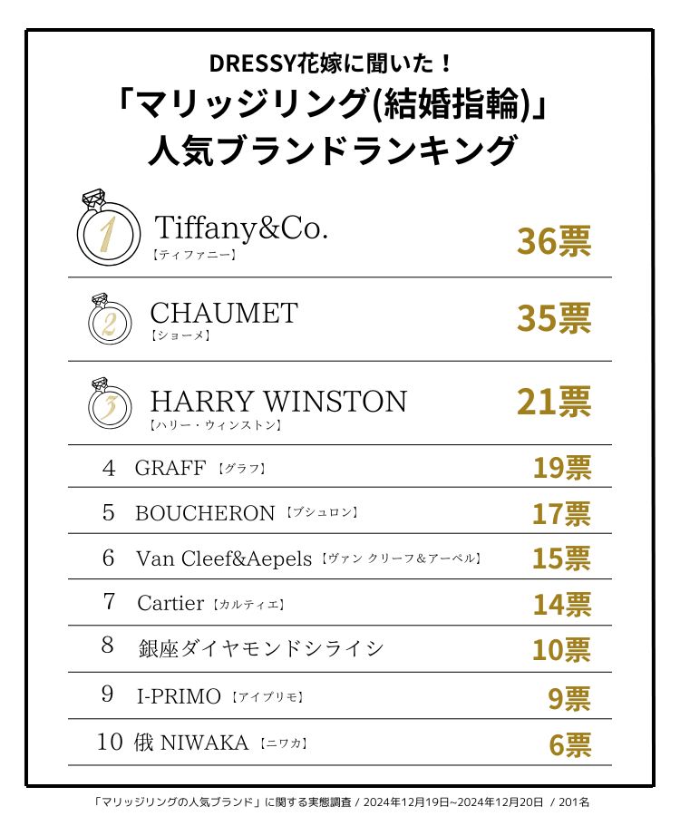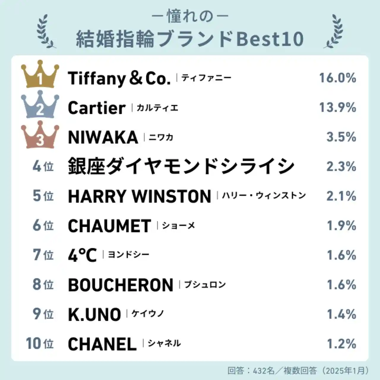 2025年10月最新 婚約指輪・結婚指輪ブランドの格付けランキング。