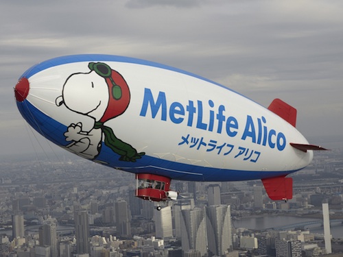 アリコの飛行船「スヌーピーJ号」が、神戸三宮の上空を飛んでいます。飛行船のレンタル料っていくらだと思いますか?松葉博雄の社長研究室。