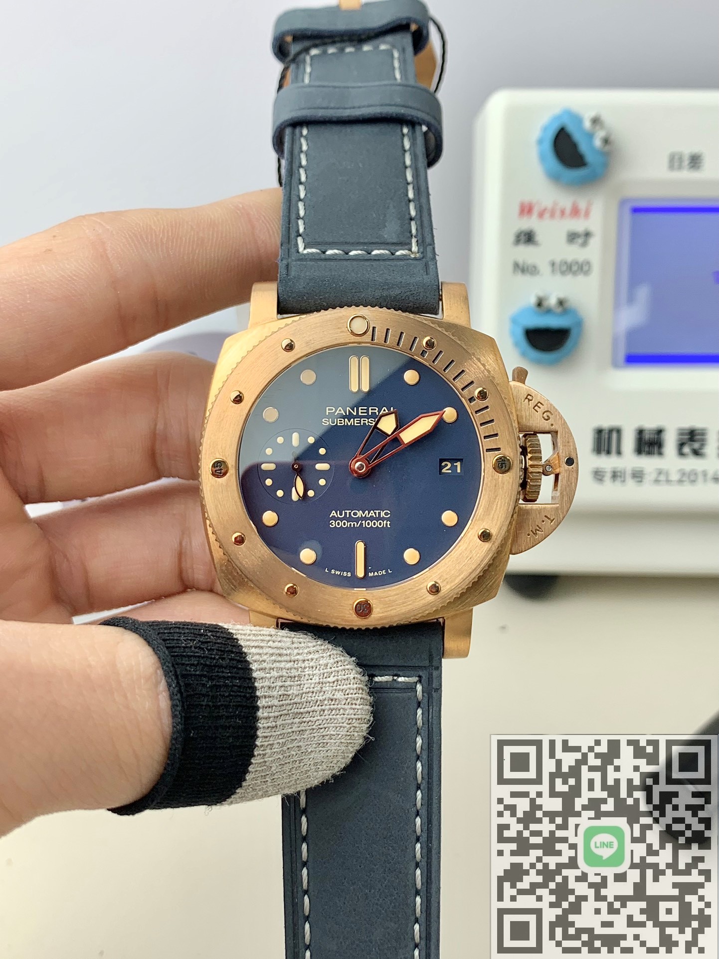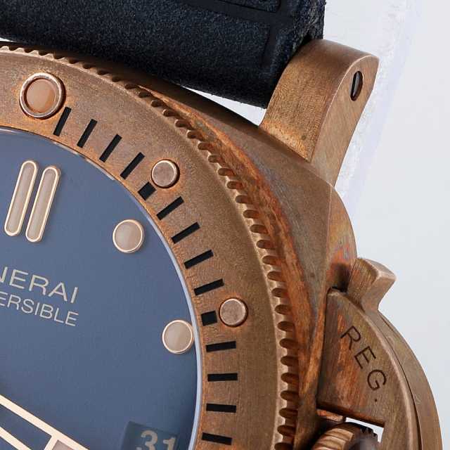 VS工場 パネライ サブマーシブル ブロンゾ ブルー アビッソ PAM01074 42mm マットブルー文字盤 ブロンズケースヴィンテージ・スエード・ストラップ P900ムーブメント搭載 - NOOB工場公式サイト。