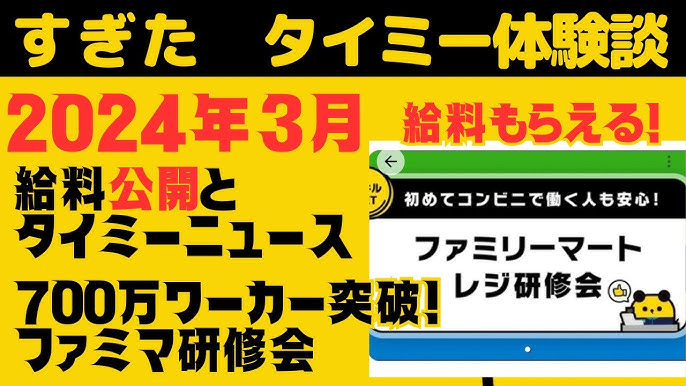 給料公開 2024年3月タイミー ファミマが驚きのお給料もらえる研修会 タイミー700万人突破 タイミー使い方講座ファミリーマートコンビニwワークアルバイト副業 - YouTube。