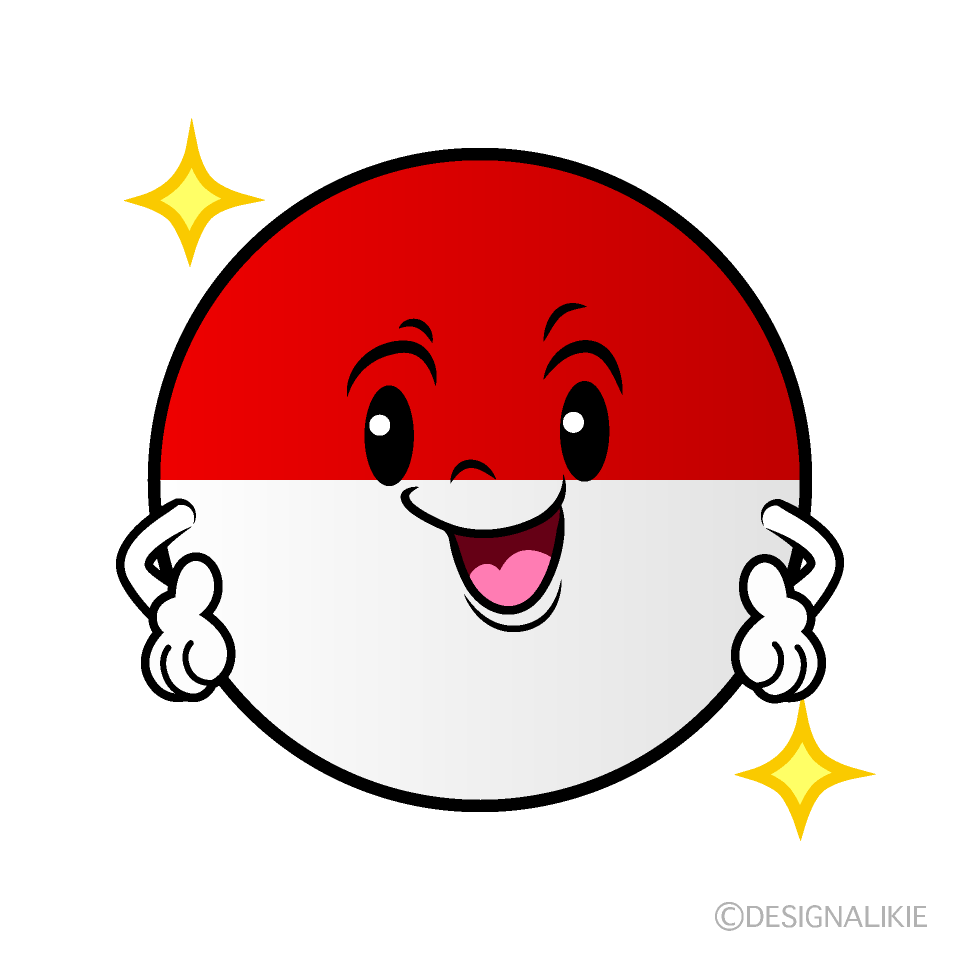 かわいいポーズするインドネシア国旗 丸型 のイラスト素材無料ダウンロード IllustCute。