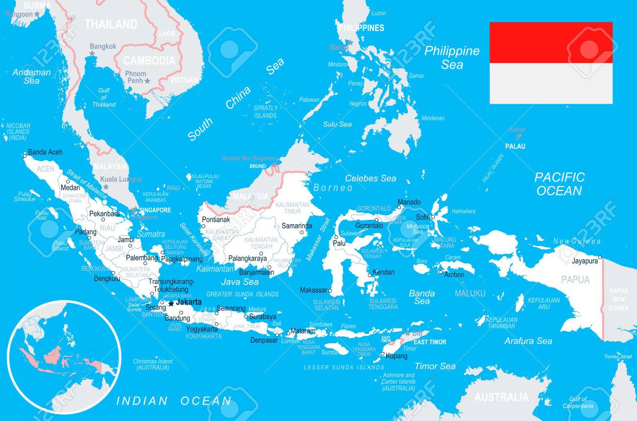 インドネシアの地図と国旗 - 非常に詳細なベクトル図のイラスト素材・ベクター Image 78267336。