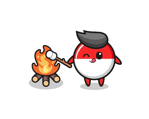 インドネシアの国旗のキャラクターがマシュマロのかわいいデザインを燃やしていますPremiumベクトル素材。