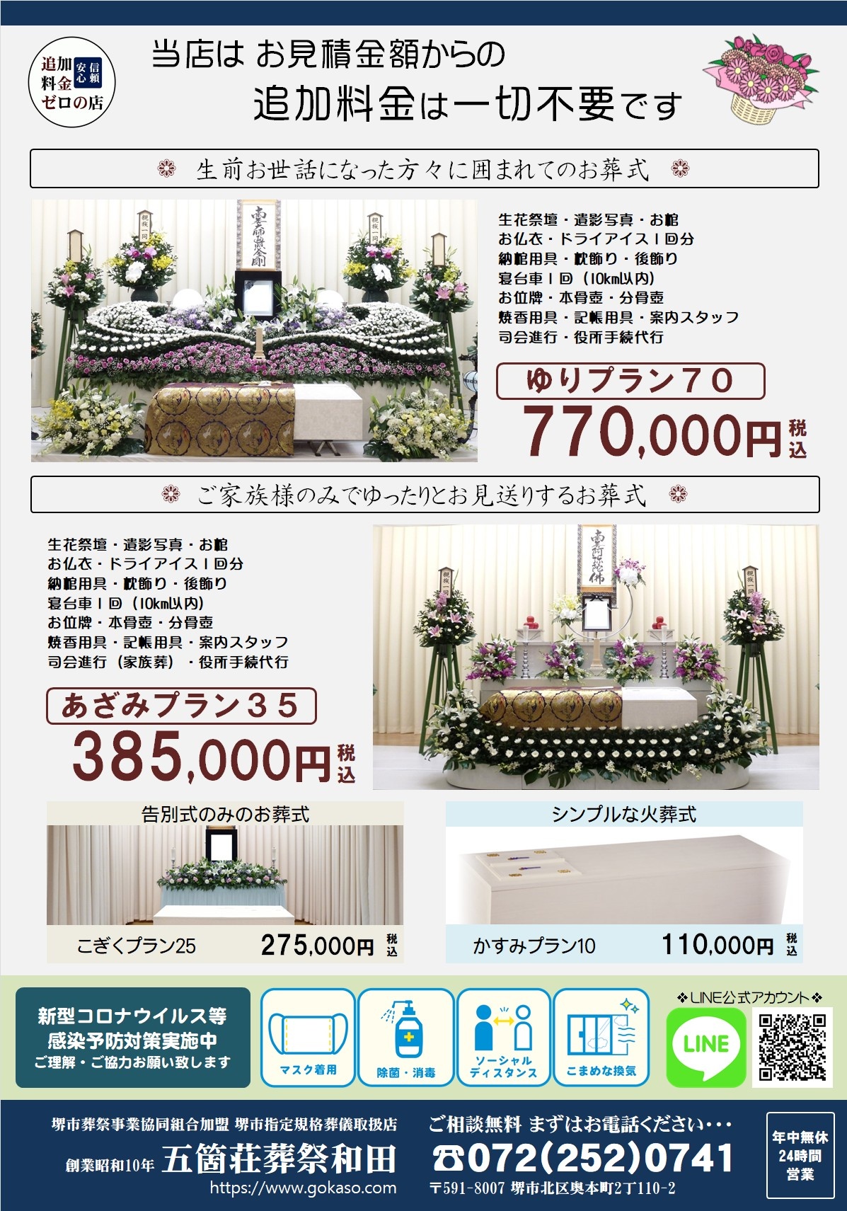 葬儀チラシ堺市立斎場での葬儀・家族葬はお任せください。