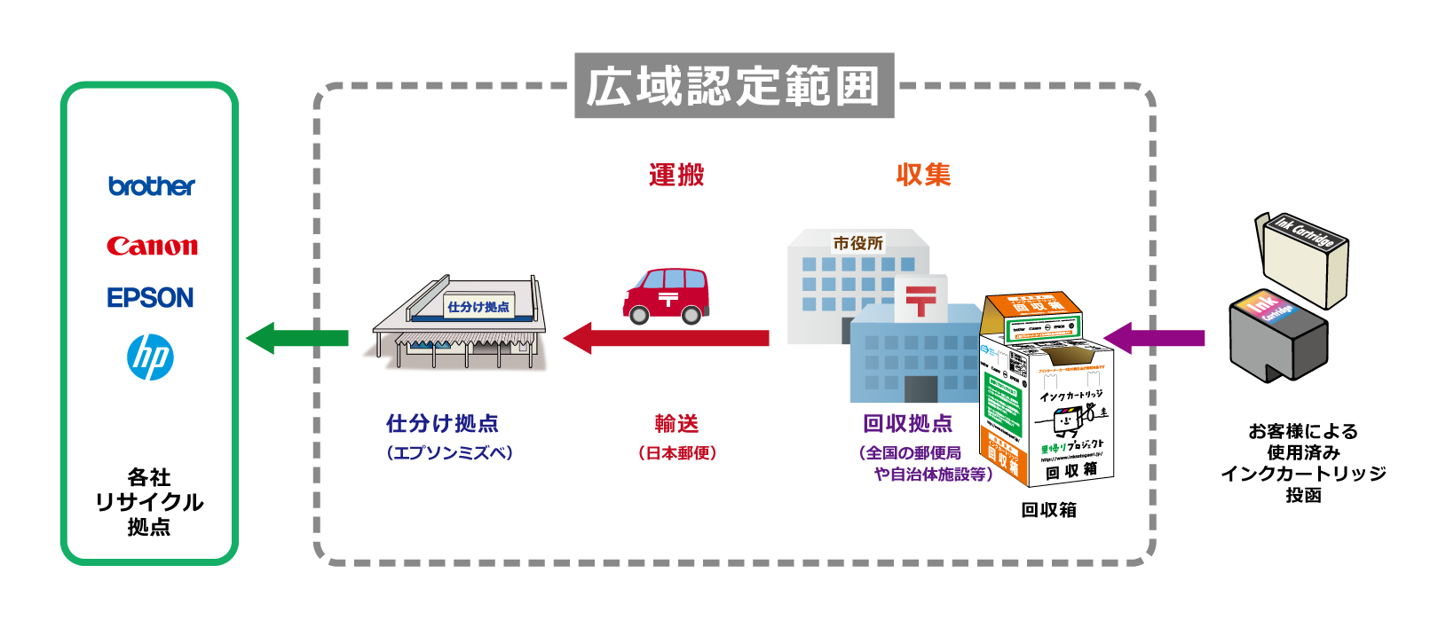 インクカートリッジ里帰りプロジェクトは環境省より「広域認定制度」の認定を取得していますインクカートリッジ里帰りプロジェクト。