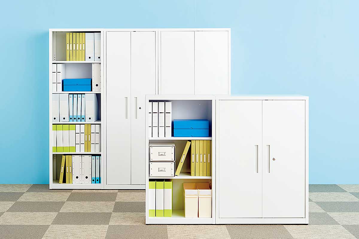 オフィス整理棚 オフィスキャビネット キャビネット 冷間成形鋼 脚付き 分類収納 スチールフレーム シンプル スチール製ファイリングキャビネットオリジナルオフィス家具の通販‐おまかせオフィス。