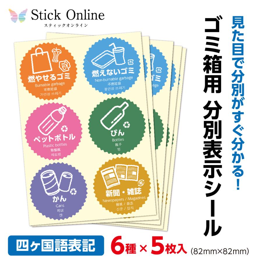 見た目で分別がすぐ分かる ゴミ箱用 分別表示シール 燃えるごみ 燃えないゴミ ペットボトル びん かん 新聞・雑誌 6種5シート計30枚入 :スティックオンラインヤフー店 - 通販 - Yahoo!ショッピング。